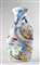 Vaso di forma irregolare in ceramica smaltata in bianco dipinta in policromia.