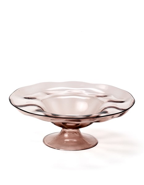 Alzatina costolata. Anni '20/'30. Vetro soffiato ametista trasparente. (h cm 8; d cm 22,2)