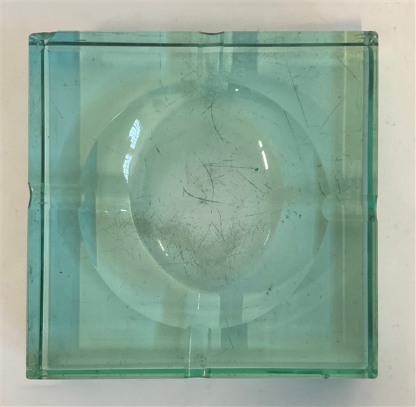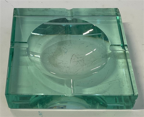 Posacenere in cristallo molato di forte spessore color verde Nilo. Italia, anni '70. (cm 15x3x15) (gravi difetti)