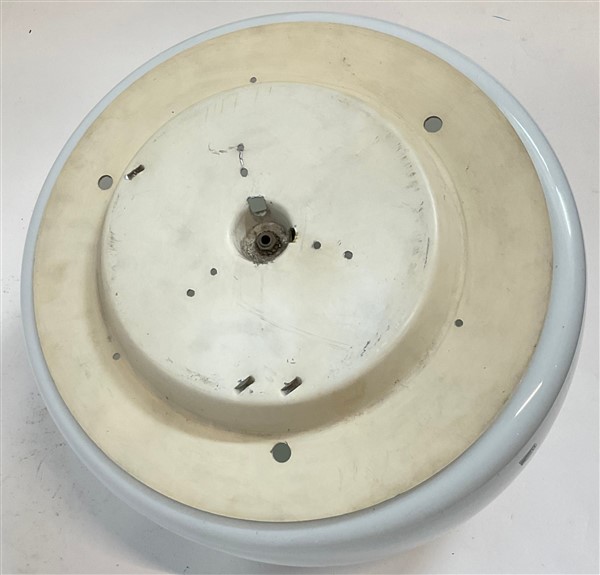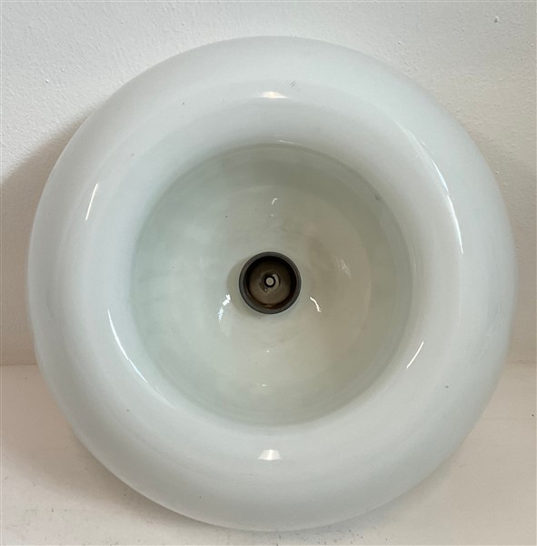 Plafoniera modello "Velella". Produzione Flos, Milano, 1967. Vetro incamiciato lattimo con struttura in metallo nichelato e verniciato. (d cm 41)