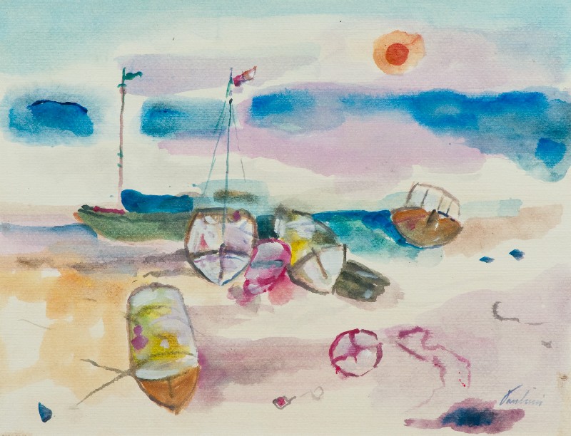 Enrico Paulucci (Genova 1901 - Torino 1999) BARCHE Acquerello su carta, cm. 34x43 Firmato in basso a destra.