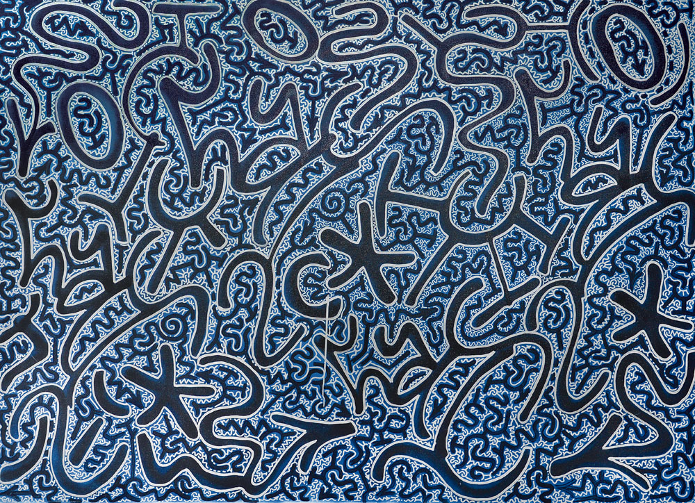 spray e marker su tela cm. 152x203, firma al retro, dichiarazione d'autenticità dell'artista su certificato della Follin Gallery allegato.