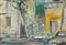Folco Chiti Batelli (Firenze 1932 - 2011) SCORCIO DI CITTÀ Tecnica mista su cartone, cm. 34x48 Firmato in basso al centro. Sul verso: etichetta "Galleria il Pozzo", Prato, con descrizione.