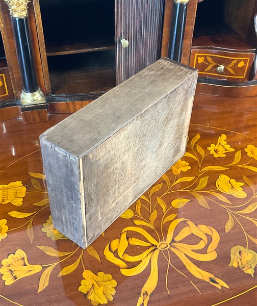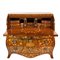 Ribalta bombata lastronata in mogano ed intarsiata in legni di varie essenze a