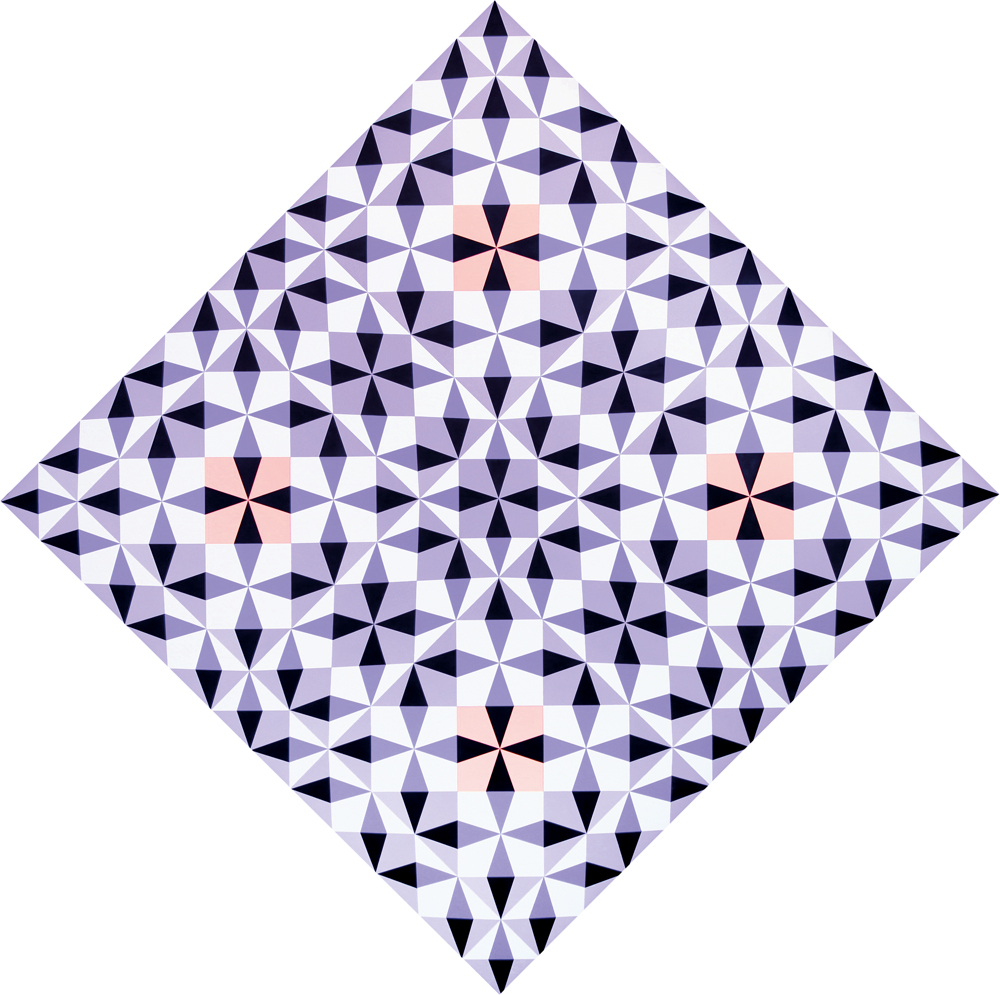 acrilici su tela romboidale diagonali cm. 99x99 (lati cm.70) firma, titolo e anno al retro e sul telaio, dichiarazione d'autenticità dell'artista su foto.