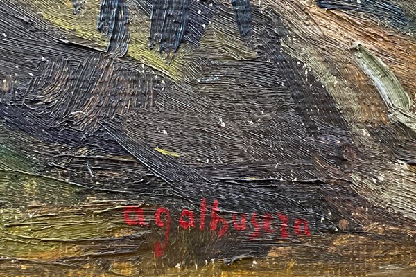 Lot 534 | Ignoto "Paesaggio con casa e albero" olio su tela (cm 50x60) firmato Galbusera
