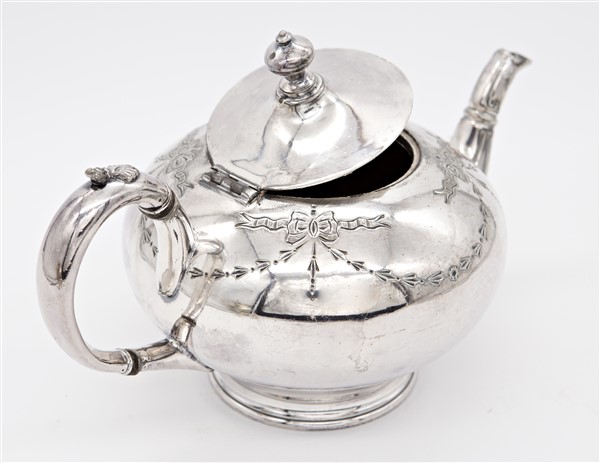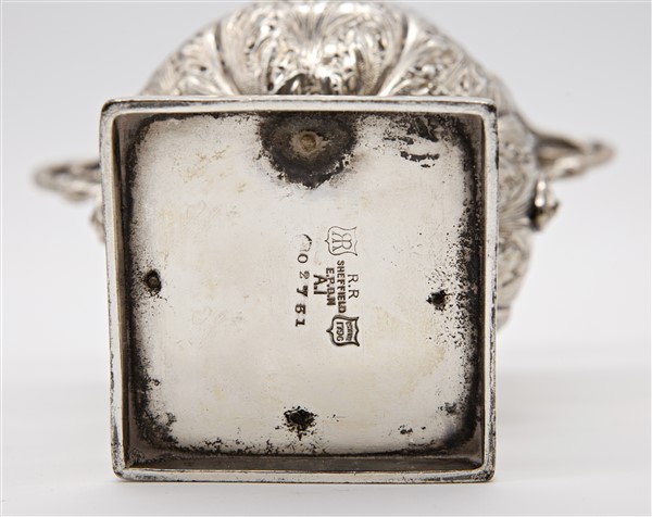 Lotto composto da una teiera e una coppa biansata in Old Sheffield, un cucchiai