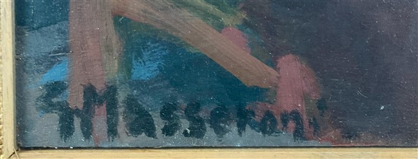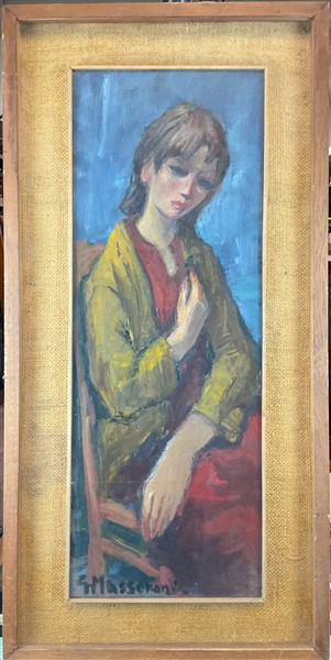 Giulio Masseroni "Ragazza seduta" olio su compensato (cm 58x21) firmato in bass