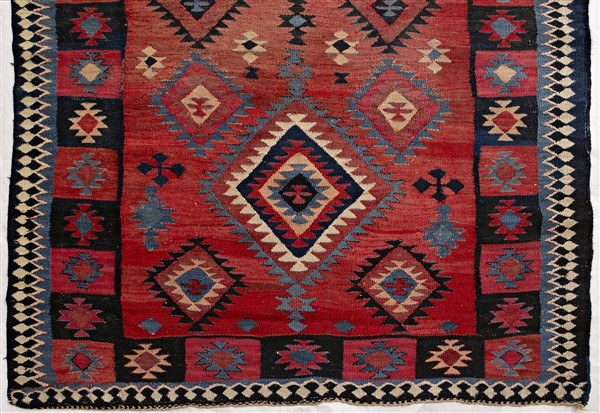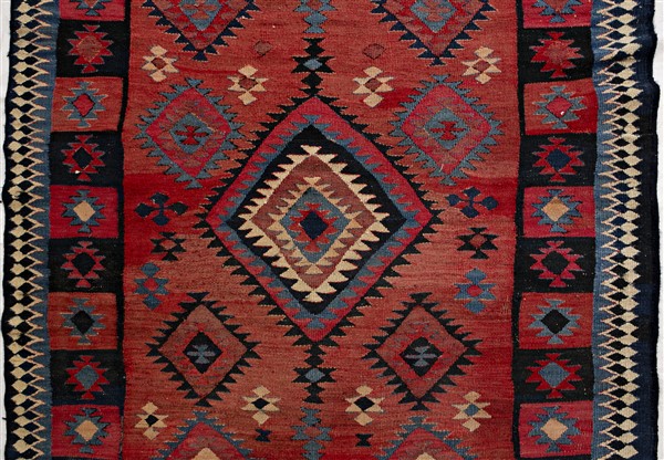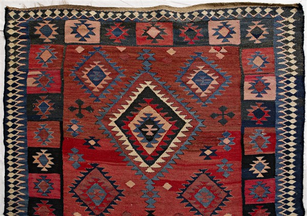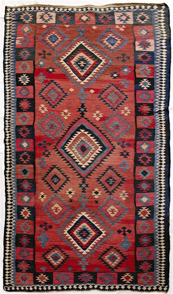 Tappeto Kilim, Anatolia, inizio secolo XX. Decoro con tre medaglioni romboidali