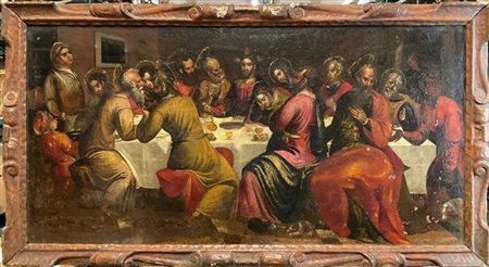 Ignoto Antico dipinto raffigurante "Ultima Cena" olio su tela (cm 59x109) in c