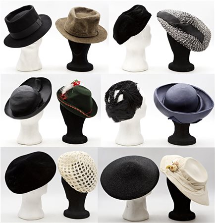 Lotto di numerosi foulard e borsette in diversi materiali, colori e foggie, in aggiunta un costume carnevalesco (difetti e mancanze)
