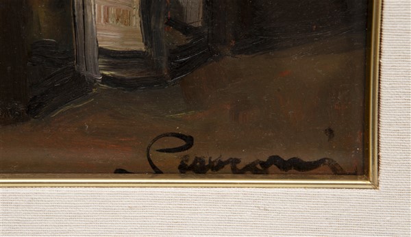 Annibale Scaroni "Gli arnesi del mestiere" 1929 olio su cartone (cm 36x45) al r