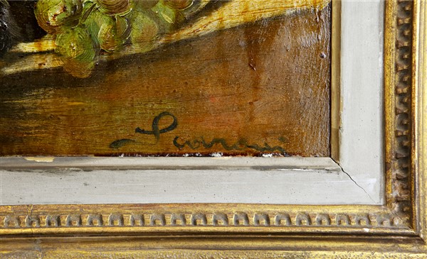 Lot 786 | Annibale Scaroni "Funghi e uva" olio su compensato (cm 40x68) firmato in basso