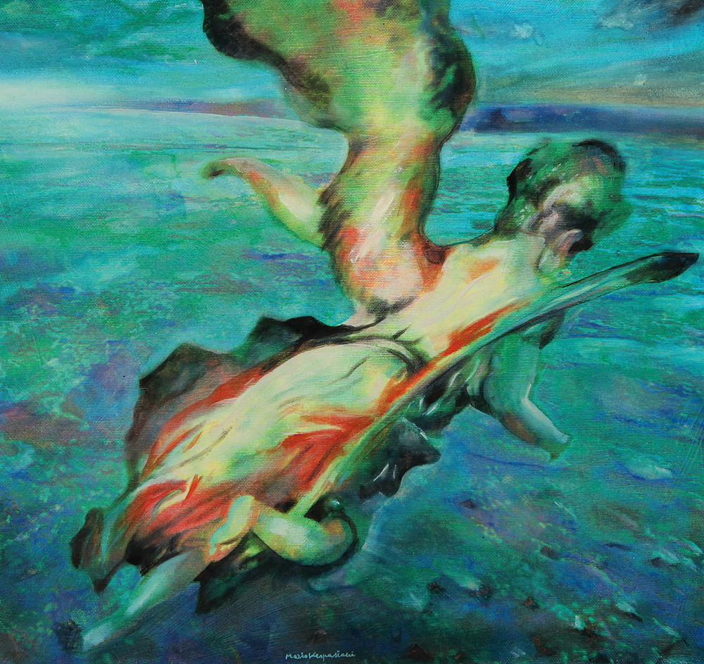olio e smalti su tela cm. 42x39,5; firma in basso al centro.