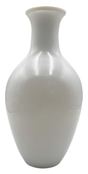 Vaso a balaustro in vetro incamiciato lattimo. Murano, anni '80/'90. Firmato a punta sotto la base. (h cm 36)