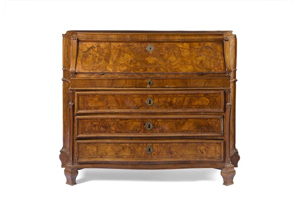 18th-century Lombard walnut veneered fall-front bureau with four drawers (cm 145x120x57) (defects and restorations)
