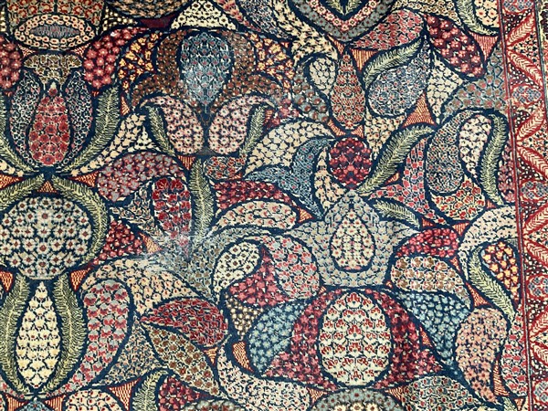 Tappeto Kirman, Persia, secolo XX. Decoro millefleur all over con motivi Boteh