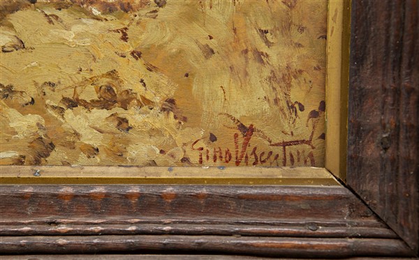 Gino Visentini "La sera grigia" olio su compensato (cm 30x24) firmato in basso