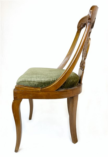 Gruppo di quattro sedie a gondola in noce con schienale centrato da cartella e
