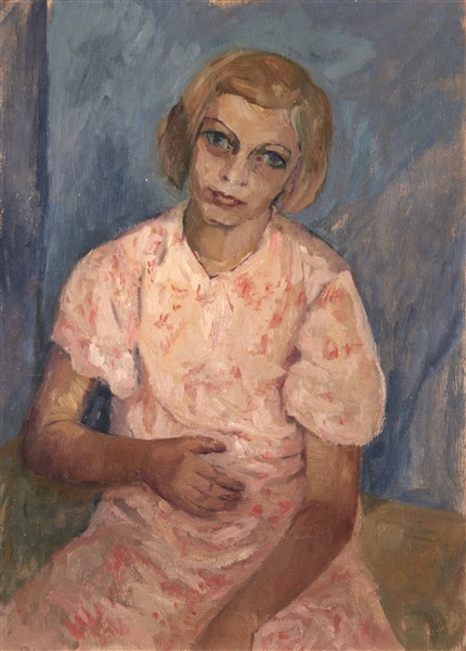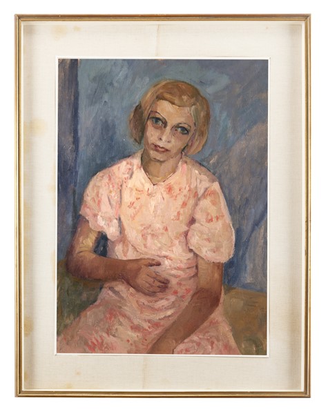 Ida Donati "Ritratto di ragazza" olio su compensato (cm 70x50) al retro: paesag
