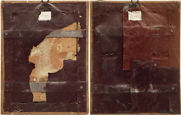 Arte del secolo XIX. Coppia di rilievi in terracotta dipinta in policromia raff