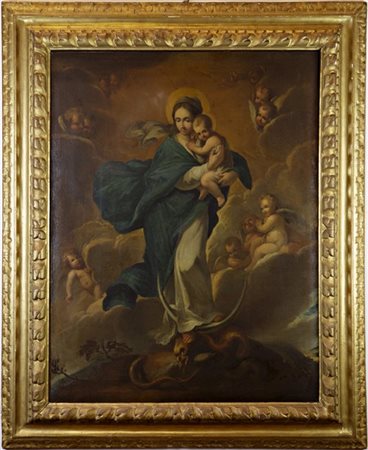 Scuola del secolo XVIII "Immacolata con il Bambino" olio su tela (cm 98x76) in