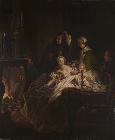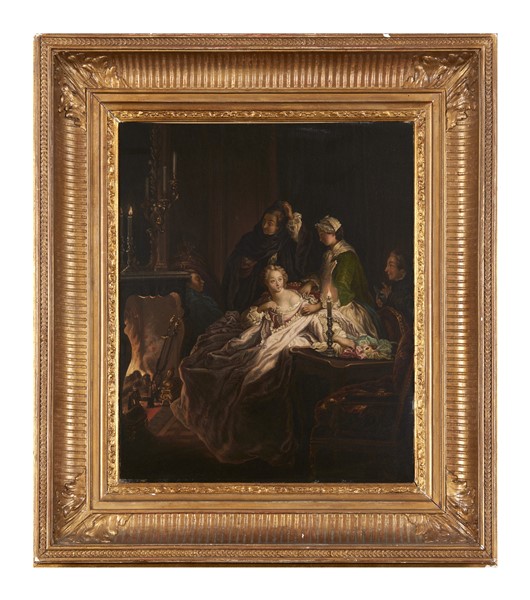Ignoto del secolo XIX "Dopo la festa" olio su tela (cm 45x38) in cornice in l