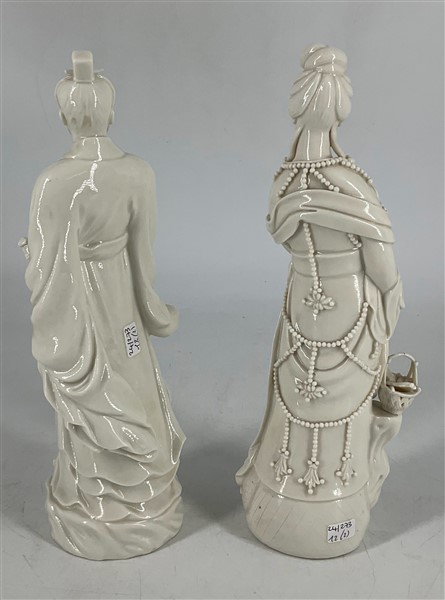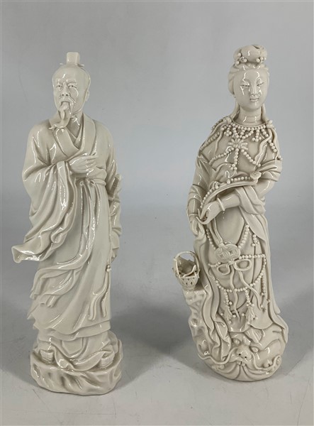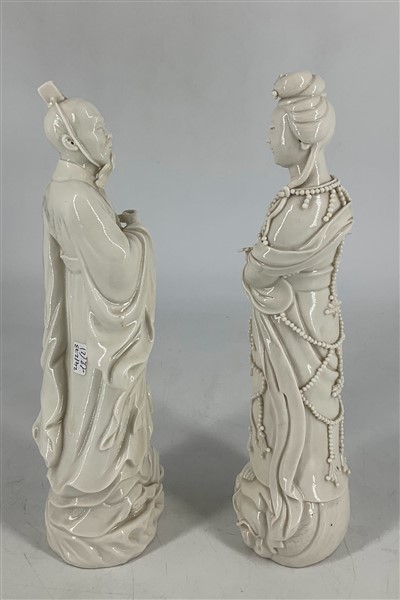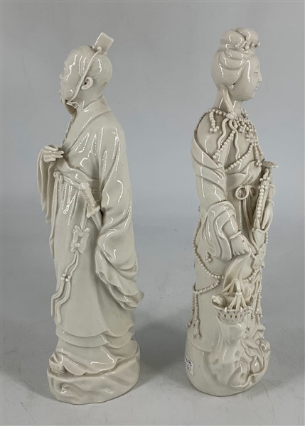 Due figure in porcellana Blanc de Chine entro scatola Cina, secolo XX (h max cm