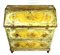 Ribalta in legno dipinto in policromia a motivo floreale. Fronte a due cassetti