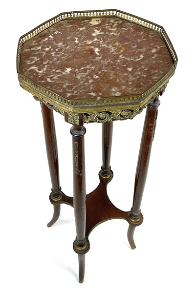 Lotto composto da gueridon con piano ottagonale in marmo e gambe tornite raccor
