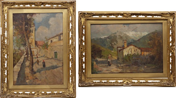 Ignoto di inizio secolo XX, Due "Paesaggi"olio su compensato (cm 50x35)