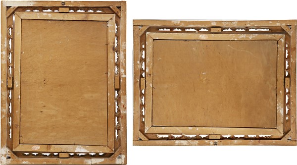 Ignoto di inizio secolo XX, Due "Paesaggi"olio su compensato (cm 50x35) in corn