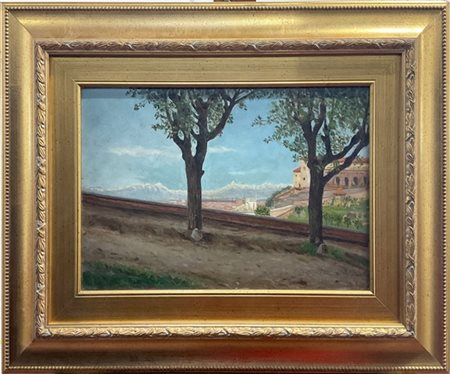 Domenico Valinotti "Veduta di Torino dal Monte dei Cappuccini" olio su cartone