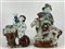 Due figure in porcellana policroma raffigurante un calivere con bambino e una f