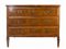 Cassettone lastronato in noce e filettato in legni vari, fronte a tre cassetti