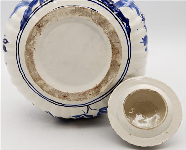 Manifattura di Delft. Vaso con coperchio in maiolica decorata nei toni del blu