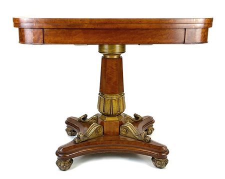 Tavolino da gioco con piano girevole e ribaltabile, interno con riserva in pann