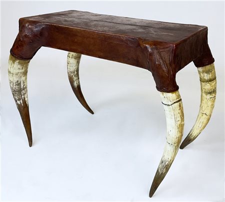 Tavolino da salotto con gambe in corno bovino e pelle. Stati Uniti d'America, secolo XX (cm 70x51x42) (difetti)