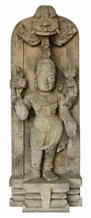 Arte indiana. Scultura in pietra scolpita raffigurante la divinità Lakshmi. (cm