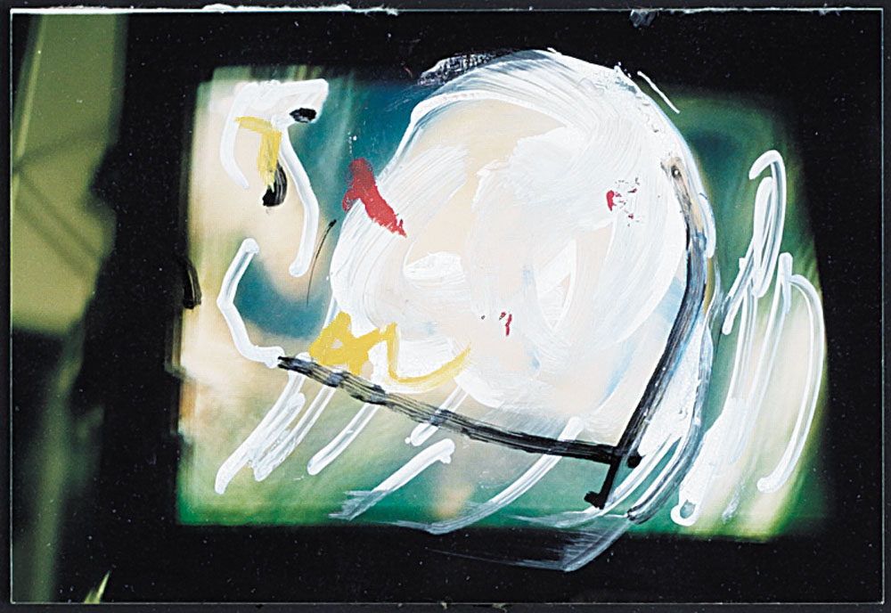 tecnica mista su fotografia cm. 10x15, firma al retro, opera registrata presso l'Archivio della Fondazione Mario Schifano al numero F 90-97/8627 come da dichiarazione su foto e su certificato allegato.