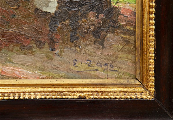 Ignoto del secolo XX "Al parco" olio su tavola (cm 24x40) reca firma non pert