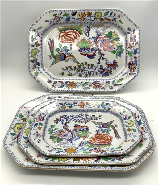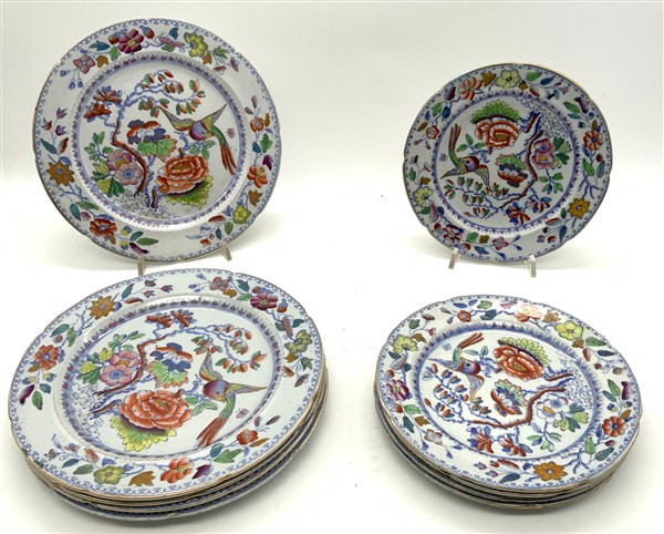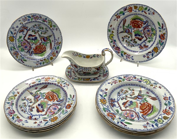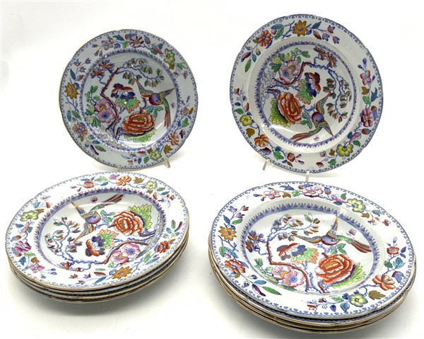 Manifattura Mason's. Servizio di piatti in ceramica decorata in policromia a mo
