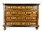 Lot 958 | Cassettone lastronato in noce e intarsiato a volute in legni vari, fronte a qua