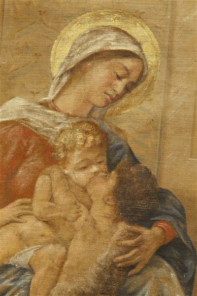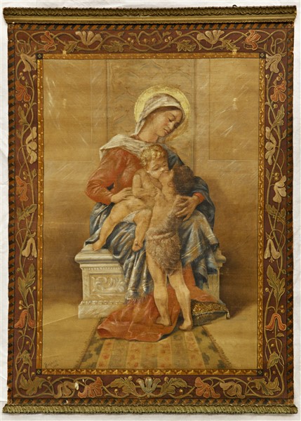 Lot 959 | Arazzo succo d'erba raffigurante "Vergine con Bambino e San Giovannino" (cm tot