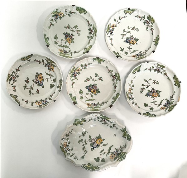 Manifattura della fine del secolo XVIII. Lotto composto da dieci piatti e un va