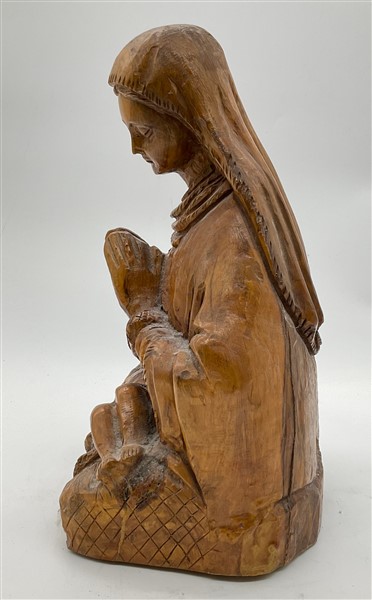 Madonna con Bambino scultura in legno intagliato (cm 20x28) (difetti)
