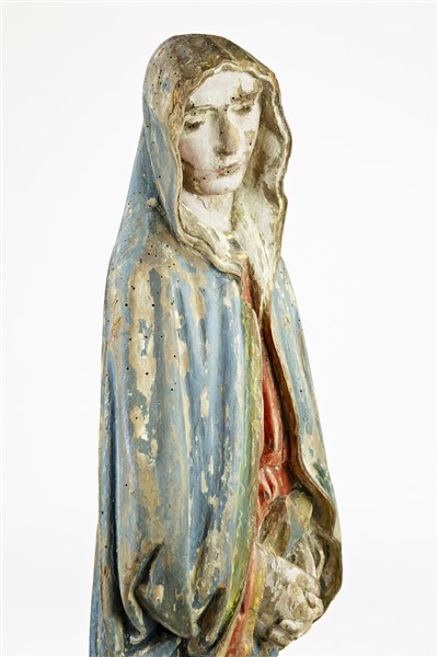 Scultore del secolo XVIII, Vergine, legno intagliato e dipinto (h cm 85) (difetti e mancanze)