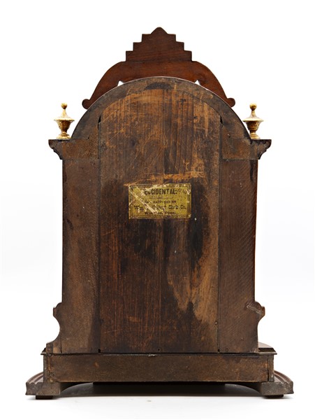 Pendola da appoggio con cassa in vetro e legno con fregi dorati. Quadrante a nu