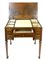 Toilette da parete in noce filettata e decorata da piccoli intarsi in legni var