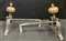 Coppia di alari da camino in ferro forgiato a volute e bronzo. Secolo XVIII (cm